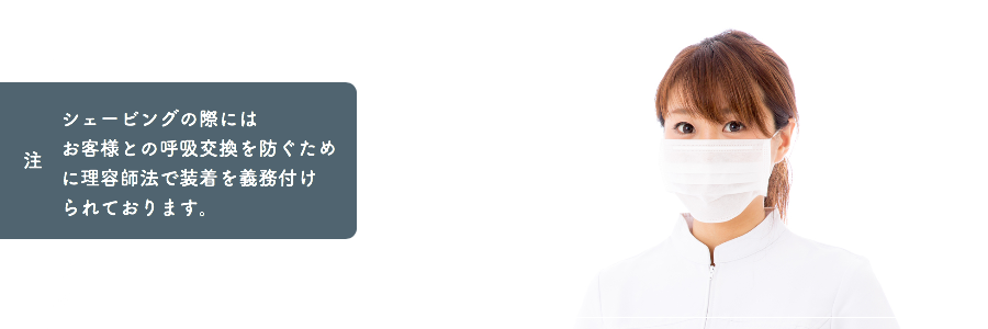 - お顔、襟剃り、腕やデコルテなどをシェービングする剃刀はお客様毎に法定消毒工程を遵守します。お客様毎の替刃交換だけでは「消毒」ではく、あくまでも工程の一部ですので「未消毒」です。